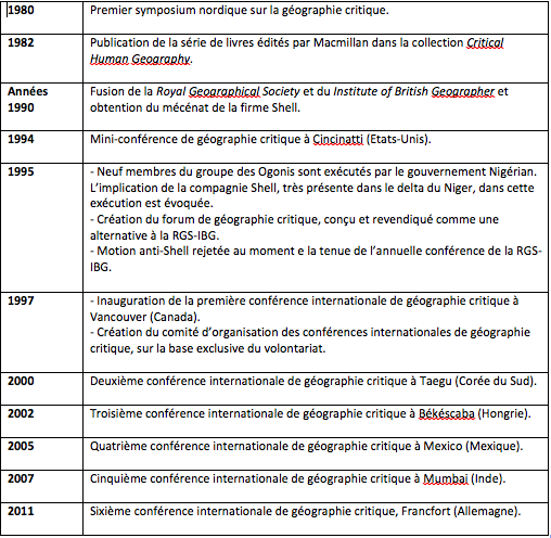 Chronologie du groupe international de géographie critique