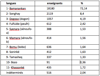 Source : rapport AUF, la place du français dans enseignement au Mali, 2006, page 26