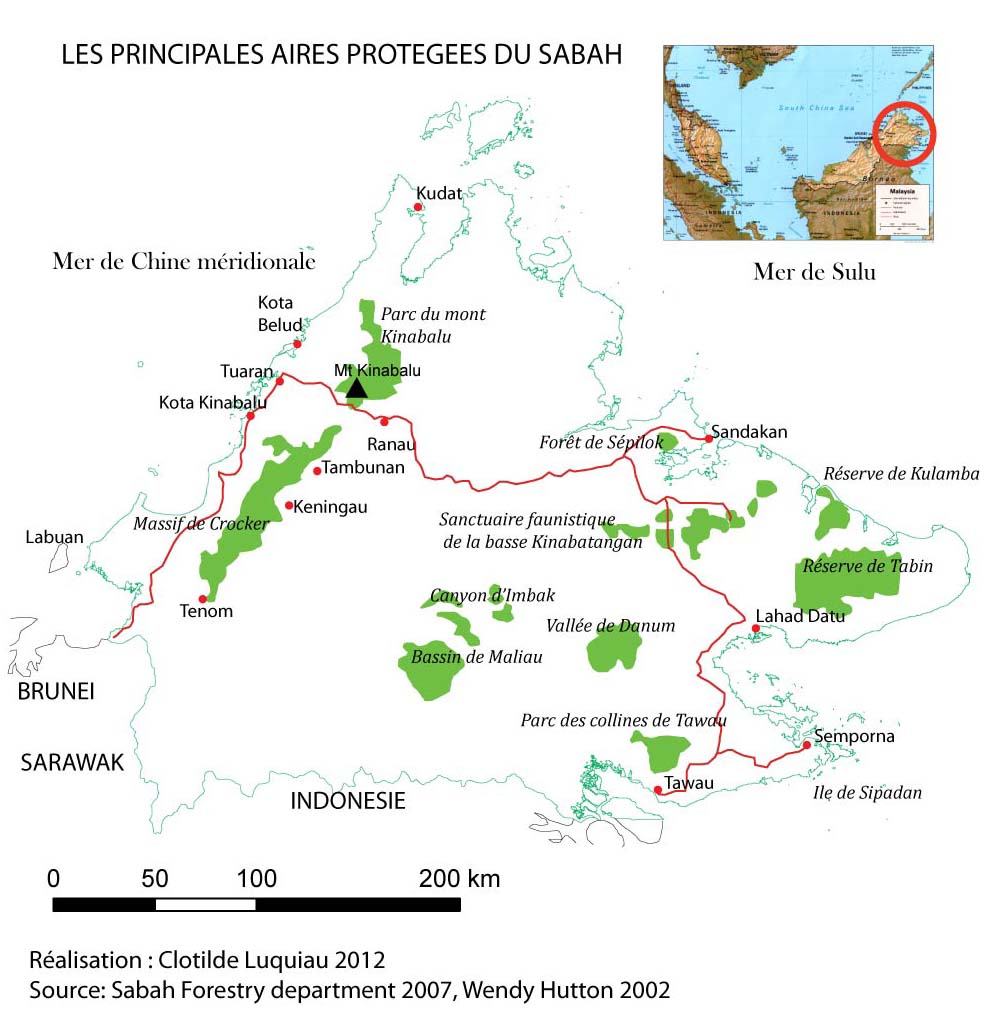 Figure 1 : Les principales aires protégées du Sabah