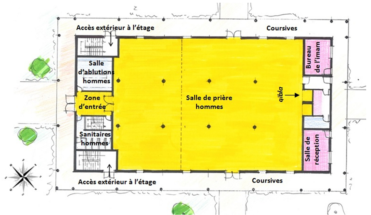 Figure 4. Plan du rez-de-chaussée de la mosquée intercommunale.