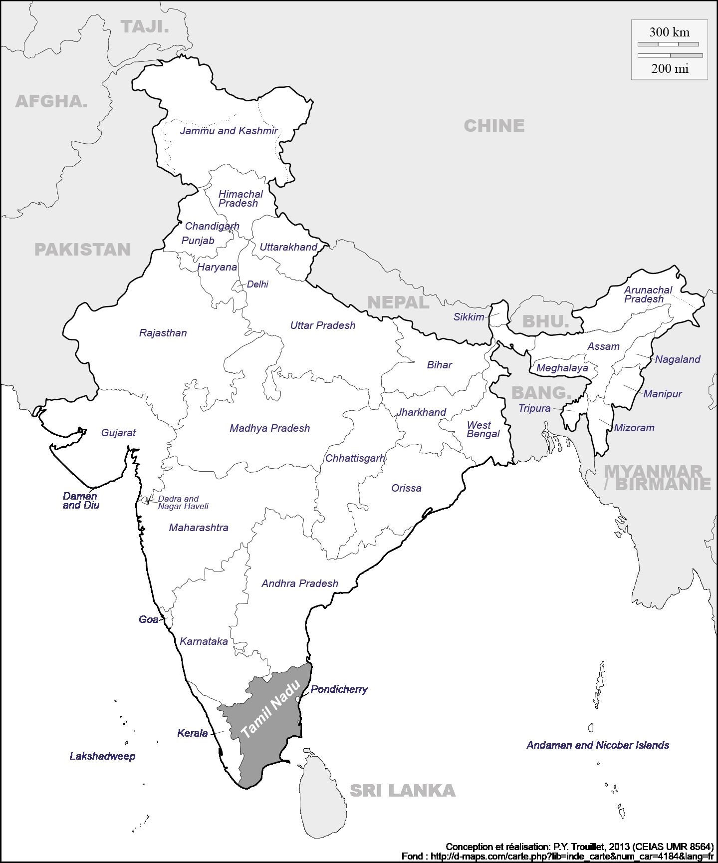 Figure 1 : Localisation du Tamil Nadu au sein de l'Union Indienne