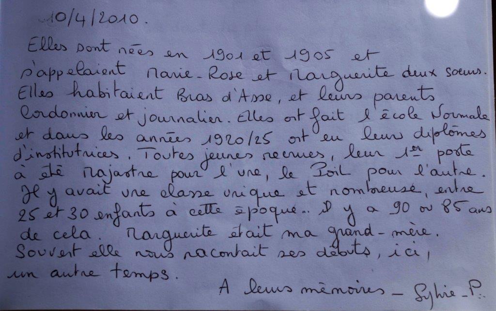 Associés au souvenir d’une autre organisation de la région, les vestiges rappellent l’important déclin démographique. En témoigne ce mot, trouvé dans un livre d’or, placé dans le refuge ouvert au public du village ruiné du Poil (sur la commune de Senez) :