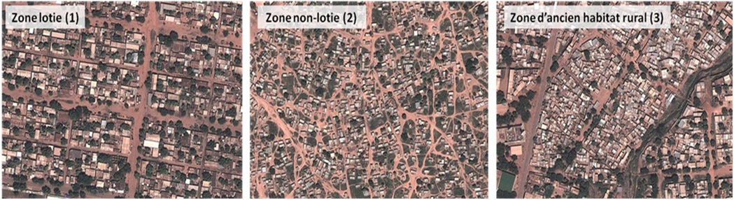 . Ces zones d’habitat ne sont pas illégales, mais ne jouissent pas d’un statut légal. Certains de ces quartiers historiques ont été restructurés (organisation orthogonale, adduction d’eau et d’électricité) et intégrés dans la zone lotie légale. D’autres ont gardé leur organisation en habitat rural car les autorités traditionnelles refusent purement et simplement le lotissement qui engendrerait une restructuration sociale et spatiale de leur quartier.