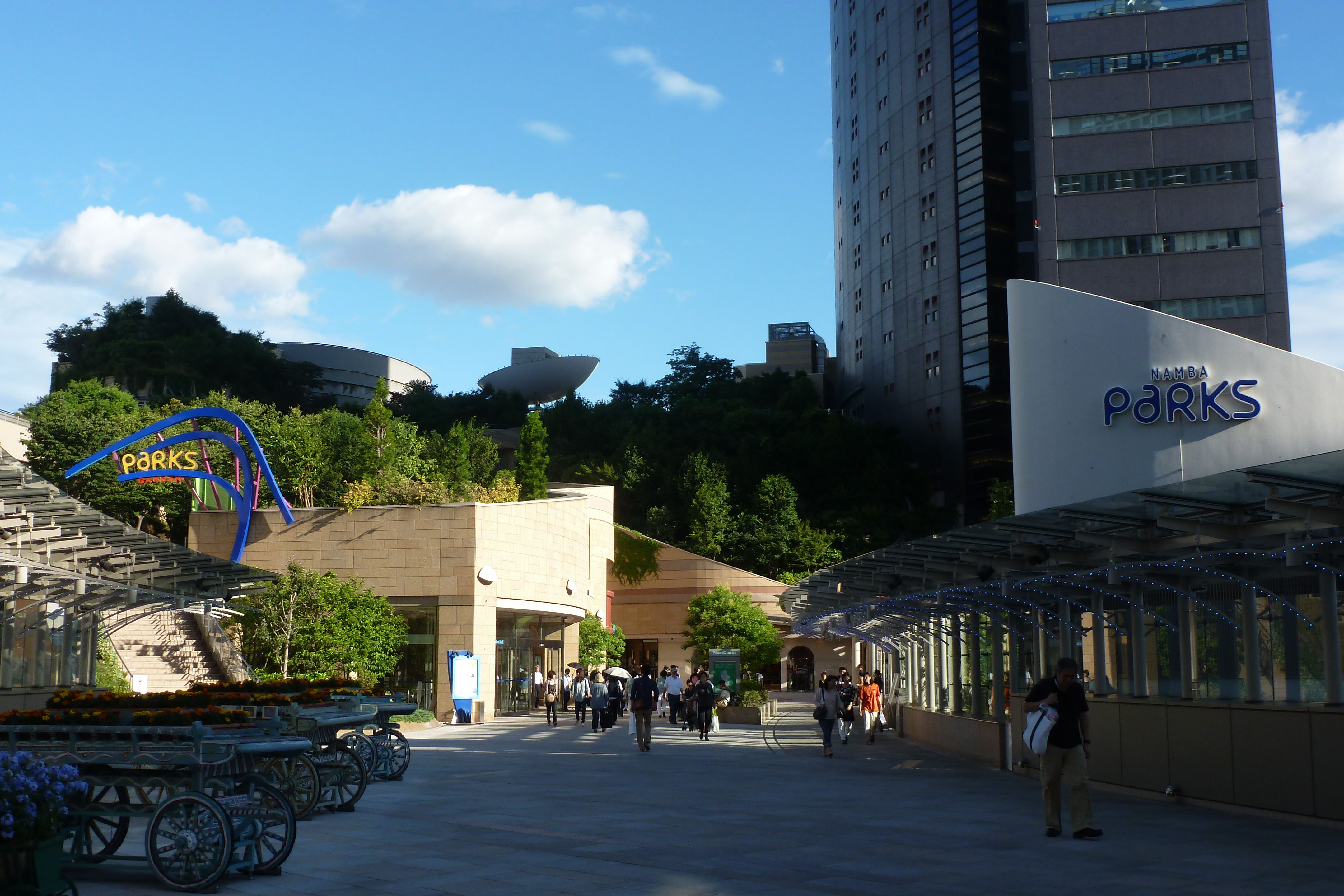 L’originalité de ce cadre conçu par le cabinet de l’architecte californien Jon Jerde a assuré le succès de Namba city : c’est un « instant-hit » dans la ville « folle de shopping » qu’est Ōsaka, selon le magazine de design freshome. Grâce à Namba city, la compagnie Nankai s’est rétablie : ses recettes d’exploitation avaient chuté de 12 % entre 1995 et 2002. En se substituant à un stade dont les parois fermaient les perspectives, Namba city témoigne aussi de la plasticité du bâti des quartiers de gare au Japon. Selon le site du cabinet Jerde, la Nankai et l’Obayashi Corporation (assistante à maîtrise d’œuvre) ont présenté un cahier des charges demandant de créer une « expérience naturelle » appelée à « redéfinir l’identité d’Ōsaka ». Il fallait que le complexe comporte d’importantes surfaces végétalisées, où la population pourrait se réfugier en cas de séisme. Selon Jerde, il en résulte un green transit-oriented development, où performance économique et écologie se fondent en un objectif unique.