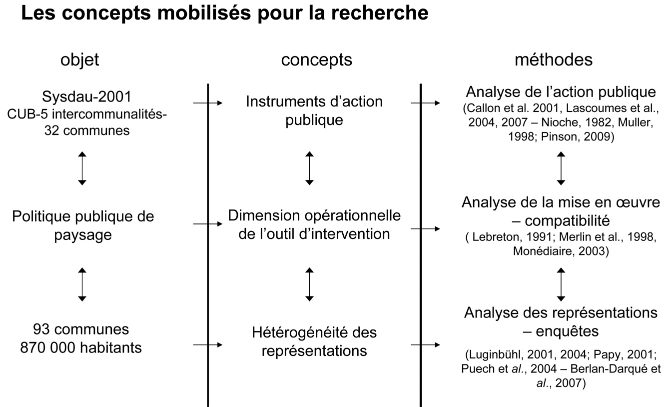 - la reconstitution des théories de l’action pour identifier les types de mobilisation des acteurs (méthodes, réseaux, formulations). Le paysage sert de levier pour introduire les enjeux de l’économie viticole et un discours axé sur le marketing territorial. Le document contient des concepts paysagers innovants favorisant l’articulation entre les politiques urbaines et rurales. Il sert de médiation pour sensibiliser l’ensemble des acteurs sur la maîtrise de l’étalement urbain et sur les rapports urbain/périurbain, sur les franges agricoles/naturelles/forestières de la métropole. Le paysage devient une ressource pour la révélation d’une identité métropolitaine.