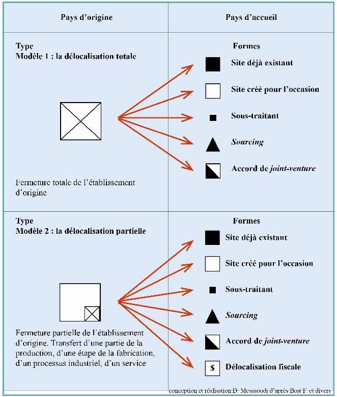 Cette thèse s’appuie sur trois grands chapitres thématiques. La première partie a eu pour vocation principale de mettre en place un cadre explicatif préliminaire à toute analyse. Elle permet de discuter le concept de délocalisation à travers une présentation bibliographique des principaux travaux d’économistes, de géographes ou d’hommes politiques s’étant penchés sur cette question éminemment stratégique. Les délocalisations sont en effet définies comme un processus multiforme, évolutif dans le temps, une sorte de continuum de situations concrètes extrêmement ouvertes ; dans cette perspective, le croquis décryptant le processus permet une vision plus claire.