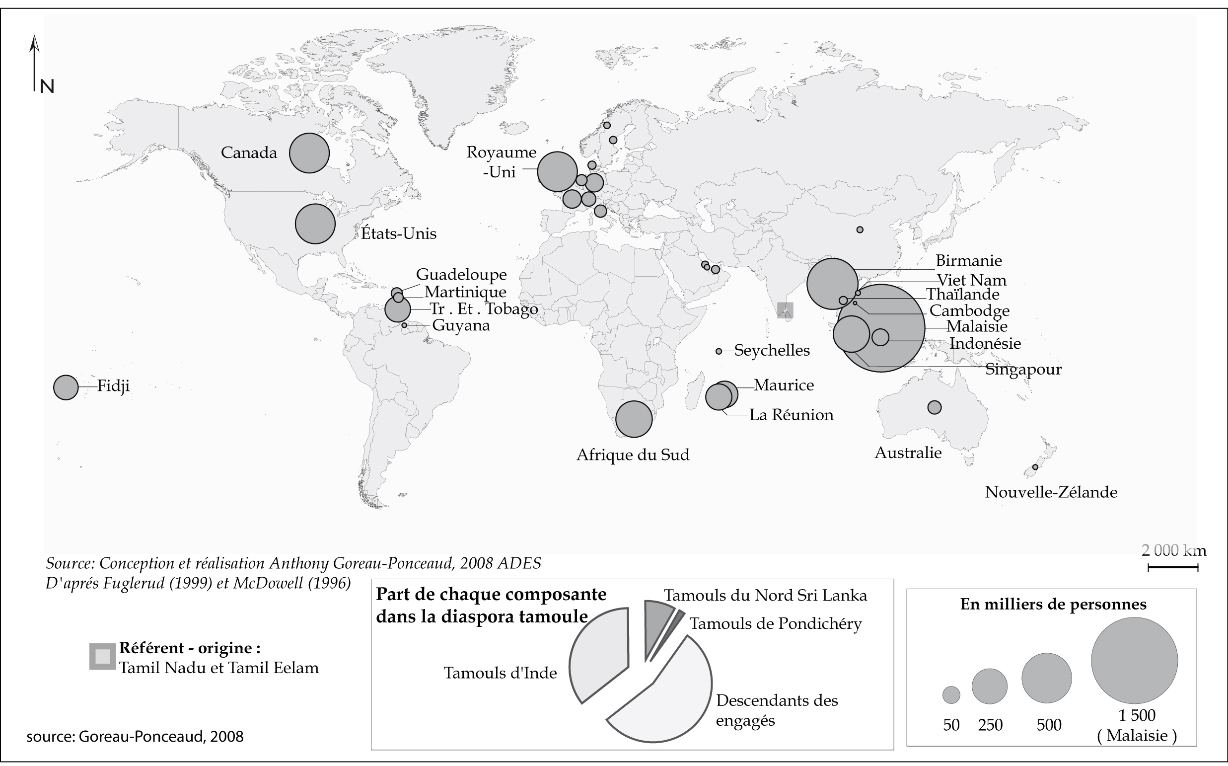 Figure 1. La communauté transnationale tamoule dispersée à travers le monde
