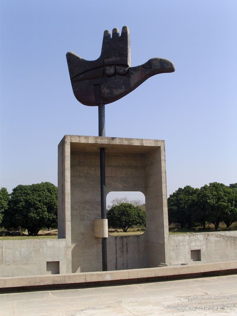 Le Corbusier a également imaginé pour Chandigarh le symbole de la Main Ouverte, « ouverte pour donner, ouverte pour recevoir ».