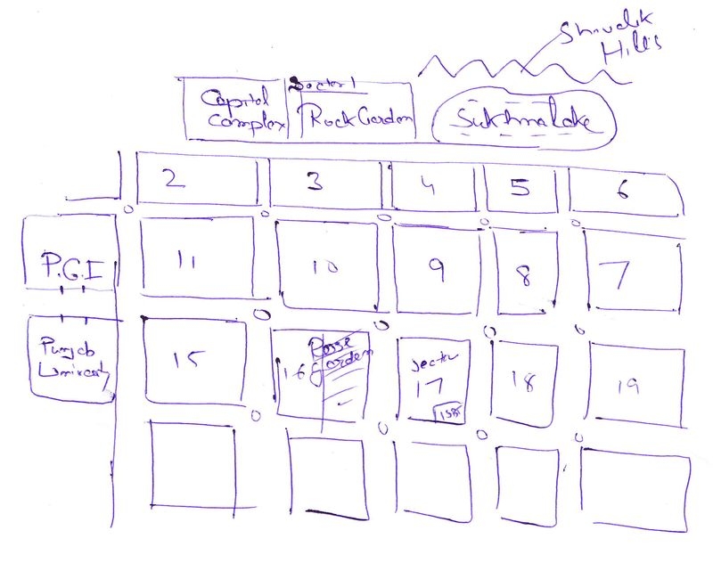 Les cartes mentales correspondent à des représentations subjectives de l'espace (Lynch, 1960). Ce procédé est utilisé par les géographes depuis les années 1960 et l’émergence du courant de la « géographie de la perception » (Lévy, Lussault, 2003). La carte mentale est une représentation inexacte d'un espace vécu, mais sa distorsion est interprétée comme la transcription d'une représentation mentale. Ces perceptions sont soumises à des analyses qui permettent de définir des points de repère, des pratiques et des parcours citadins. Certes, les cartes mentales ont fait l'objet de critiques dès les années 1980 en raison de leur utilisation systématique et des surinterprétations auxquelles elles donnaient parfois lieu. Pourtant, elles demeurent un outil intéressant dès lors qu’elles sont utilisées avec précaution. Si les cartes mentales collectées à Chandigarh traduisaient dans l'ensemble une bonne connaissance du plan et des symboliques de la ville par les citadins, il me semblait nécessaire de confronter ces cartes avec d'autres matériaux et d'autres représentations afin d'approfondir l'analyse.