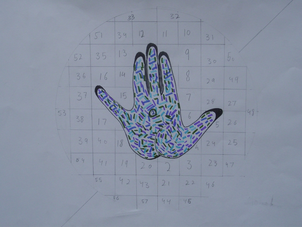 Pour représenter la ville de demain, le premier élève (Figure 6) a choisi de placer la Main Ouverte au centre du dessin pour figurer le secteur 1, ce qui témoigne de toute l'importance de ce symbole pour les jeunes citadins. Autour de la Main Ouverte, l'enfant a représenté les secteurs au sein d'un cercle. Si l'ordre numérique des secteurs est conservé, la centralité ainsi qu'une organisation harmonieuse sont ici privilégiées pour la future Chandigarh. La frontière entre l'Haryana et le Pendjab est par ailleurs toujours représentée mais la séparation se fait désormais de manière plus claire et équilibrée. Le second dessin (Figure 6 bis) place lui aussi la Main Ouverte au centre de la ville à venir, mais elle constitue cette fois davantage un lieu central isolé, peut-être à la manière d'une place ou d'un lac à la forme singulière. Autour de ce centre se construit un réseau routier complexe qui relie les différents secteurs dont l'ordre numéraire a été bouleversé. Figurées par des ronds-points, les principales connections routières se font par ailleurs à l'écart des espaces résidentiels. La ville s'étend donc ici autour d'un centre emblématique et les fonctions semblent véritablement séparées. C'est une plus grande complexité urbaine et presque un certain désordre qui sont ici imaginés par l'enfant et qui laissent en un sens la possibilité de la perte et de l'errance aux citadins à venir. L’organisation de la ville en secteurs et en voies de circulation hiérarchisées influence grandement les parcours et l’imaginaire géographique des enfants. Le dessin laisse néanmoins ici entrevoir la possibilité pour ces jeunes citadins de remodeler la ville et le plan selon leurs besoins et leurs désirs.