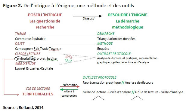 L’utilisation de la représentation graphique représente un enjeu scientifique car elle interroge sur les moyens qu’elle a d’apporter des réponses à une question de recherche, cela en dépit d’un traitement et d’une analyse difficiles (Gumuchian, 1991 ; Bonin, 2004). La démarche méthodologique choisie est construite au regard de l’objet de recherche et ses clés de lecture, dans le cadre de la triangulation des données (Figure 2).